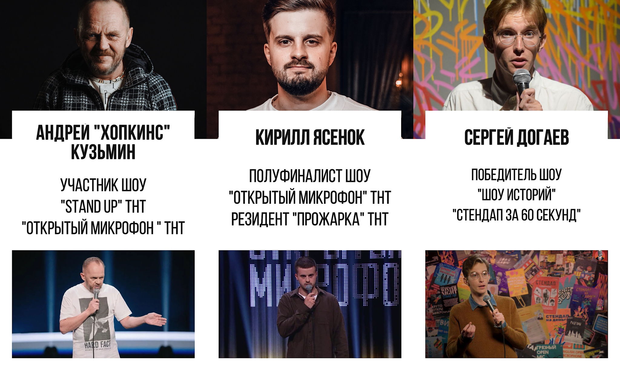 В программе опытные московские комики, в том числе участники ТВ и YouTube проектов.