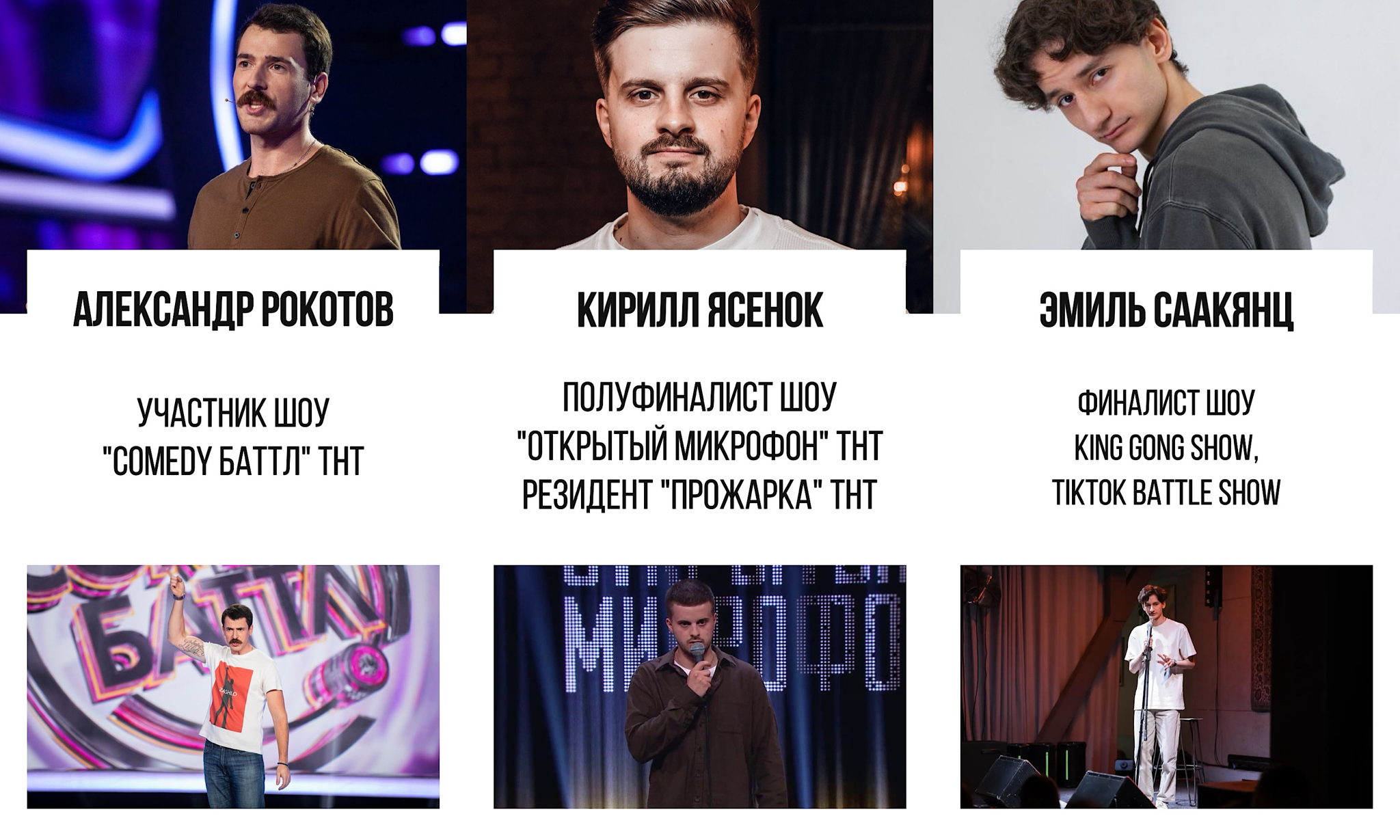В программе опытные московские комики, в том числе участники ТВ и YouTube проектов.